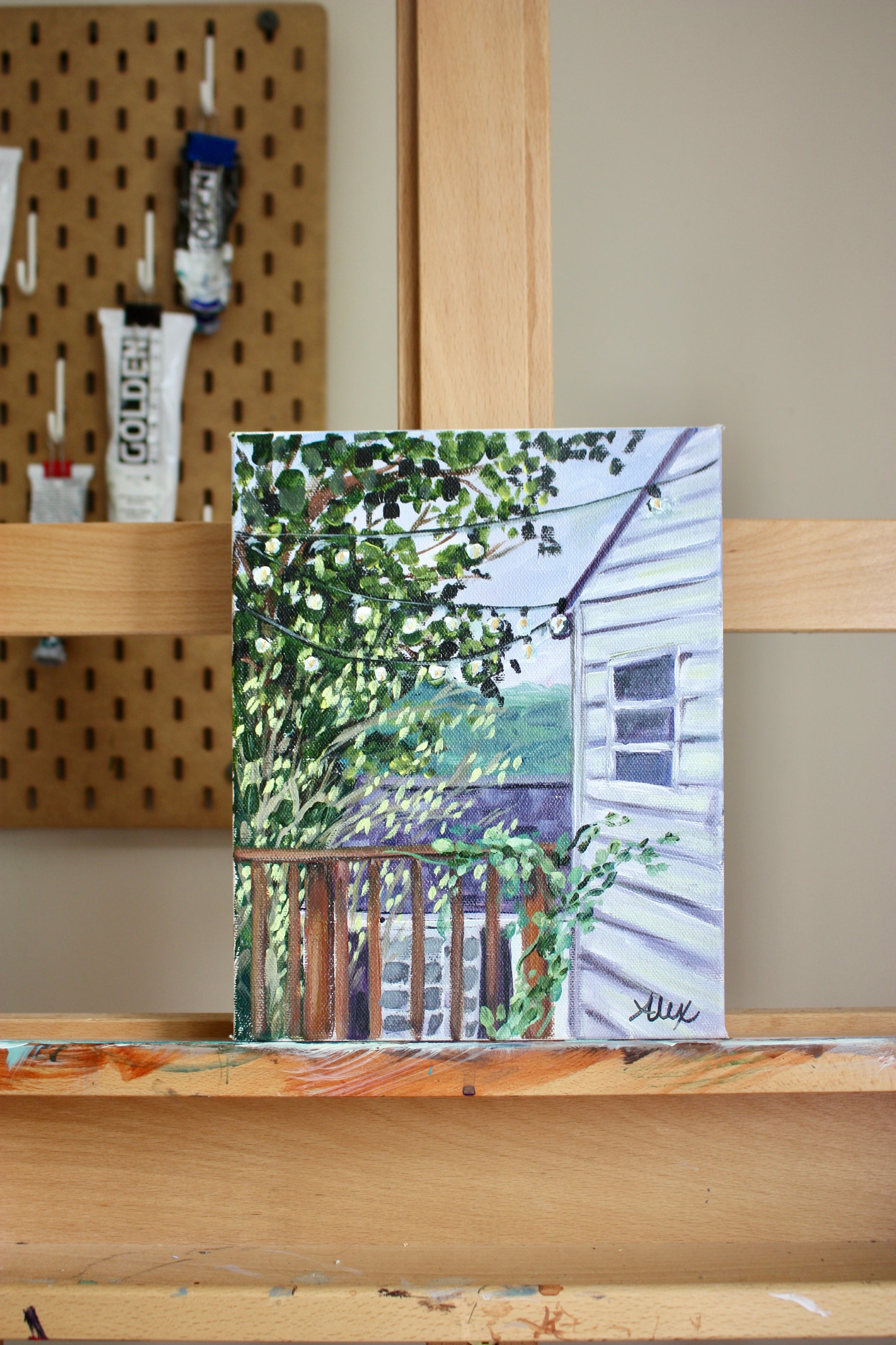 This 8x10 acrylic on canvas painting was painted en plein air from Katie's window.