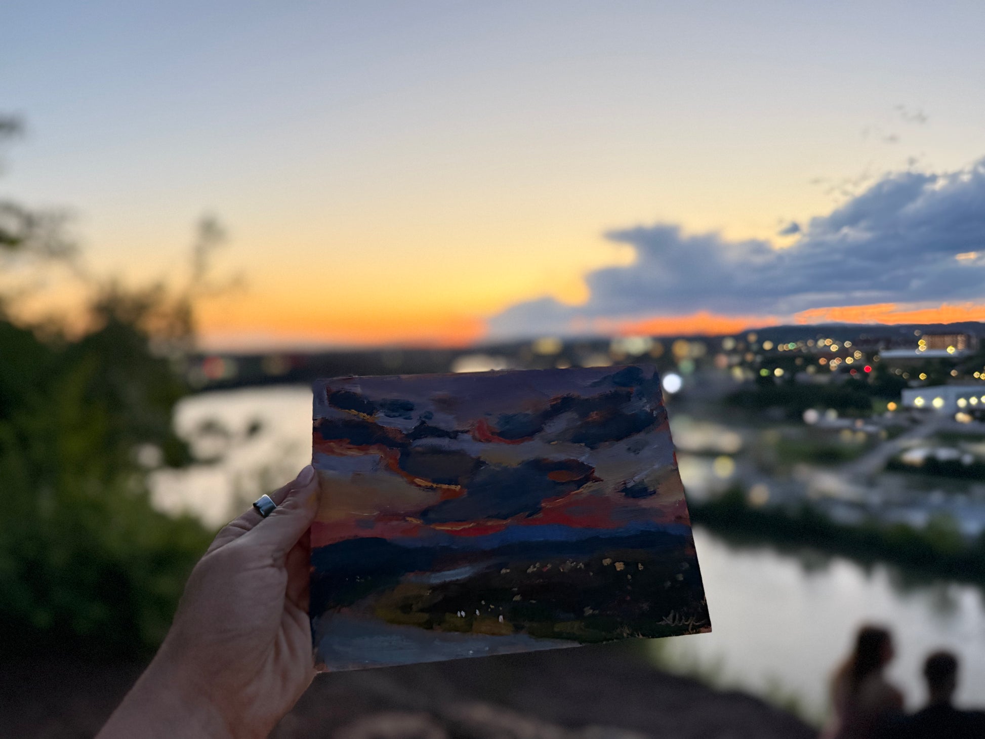 This 6x8 oil on canvas was created at sunset en plein air at River Bluff Overlook in Knoxville, TN.