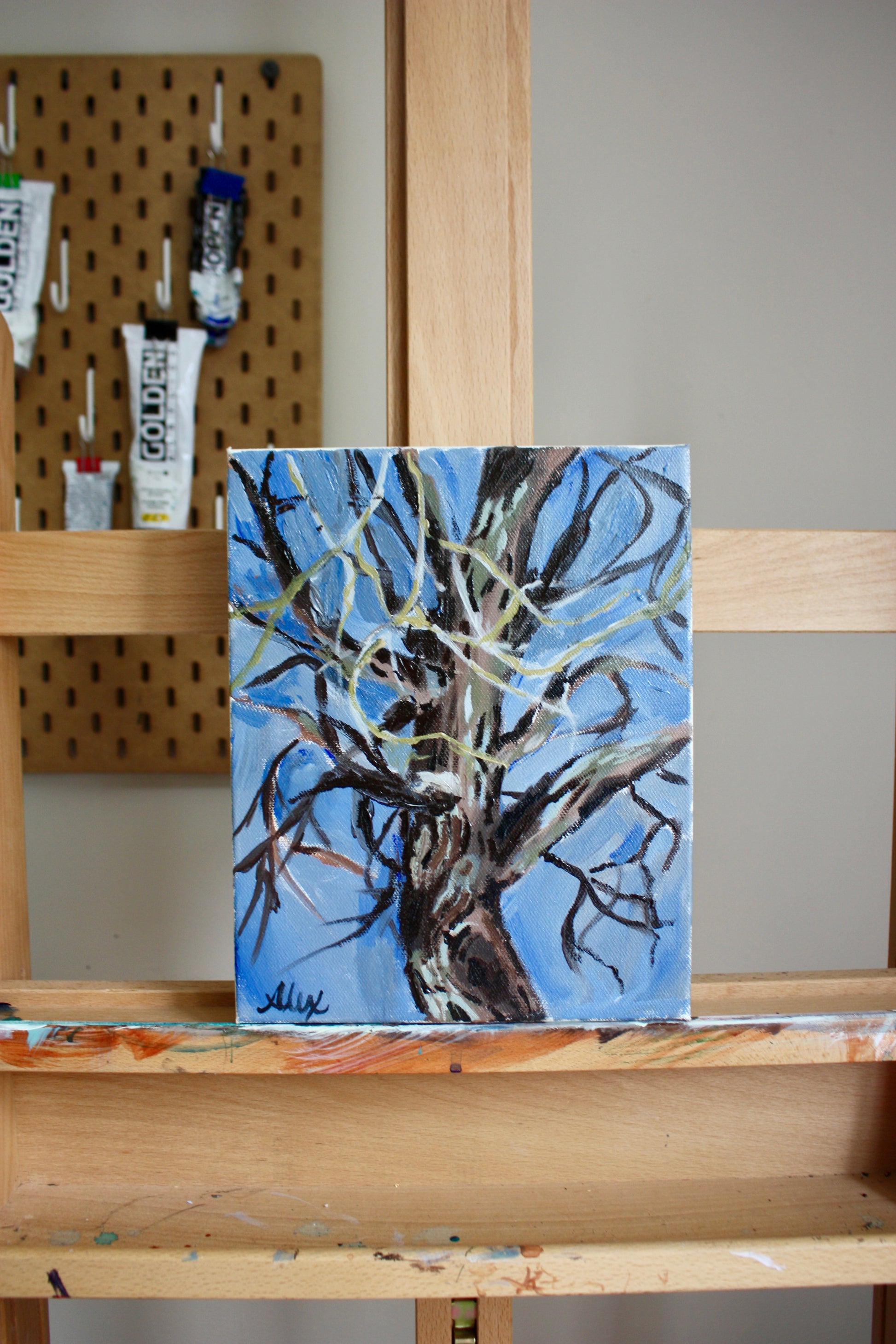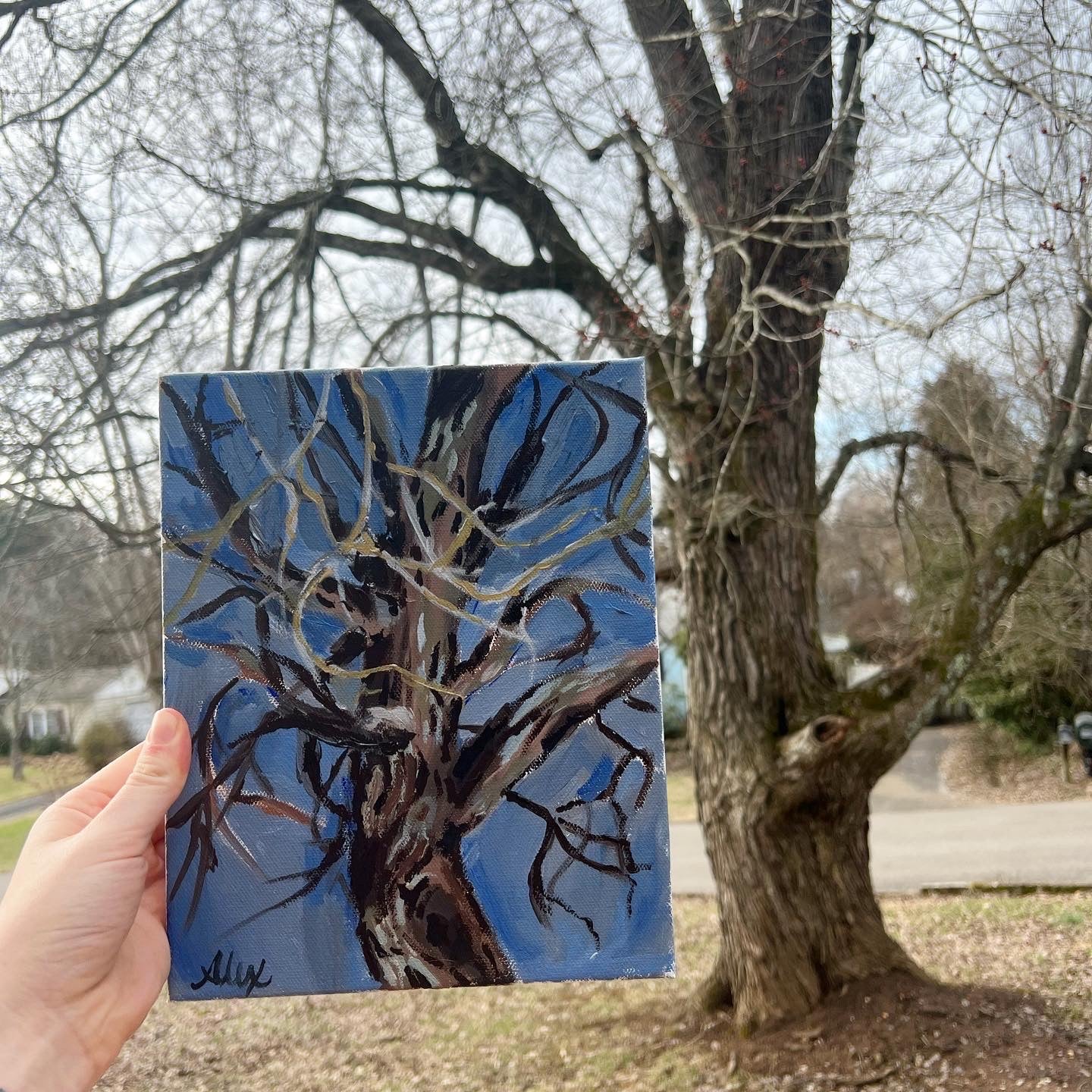 This 8x10 acrylic on canvas painting was created en plein air from Alex's living room window.