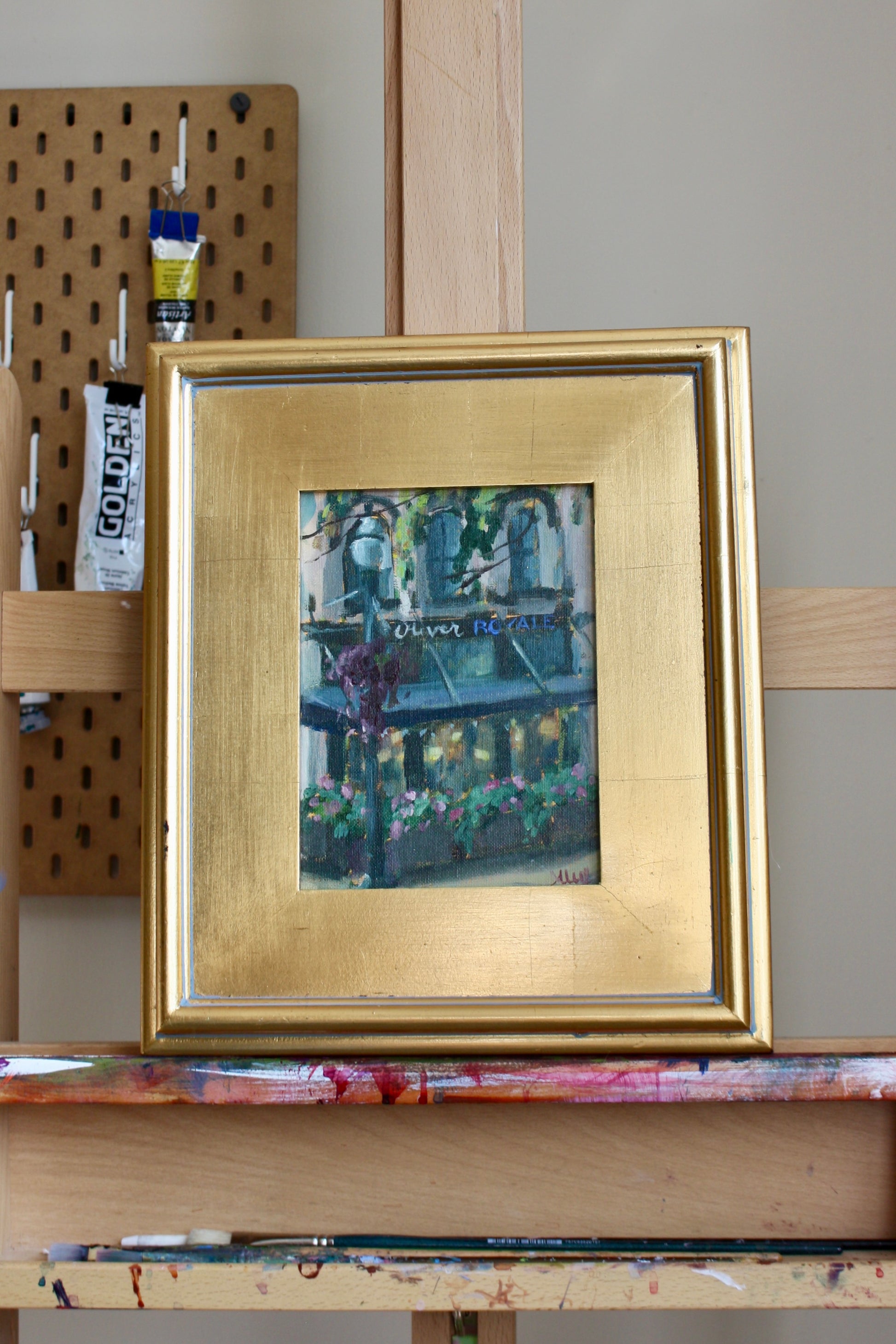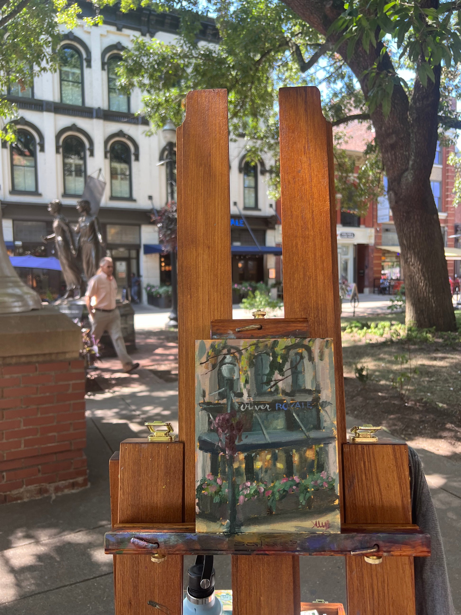 This 6x8 oil on canvas painting was created en plein air in Market Square in Knoxville, Tennessee. This painting comes framed in gold.