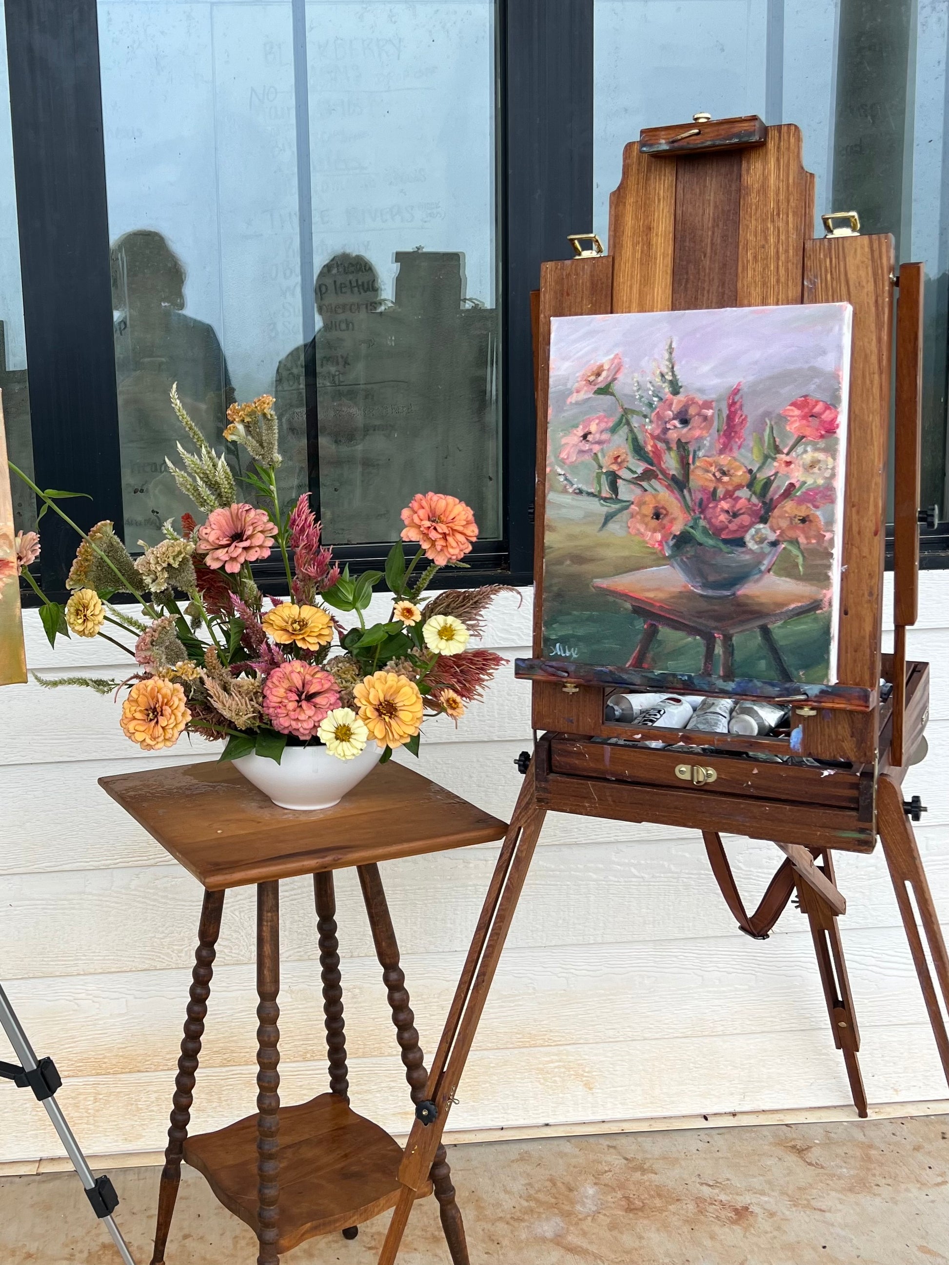 This 11x14 oil on canvas painting was created en plein air at the Southern Bella Blooms farms.