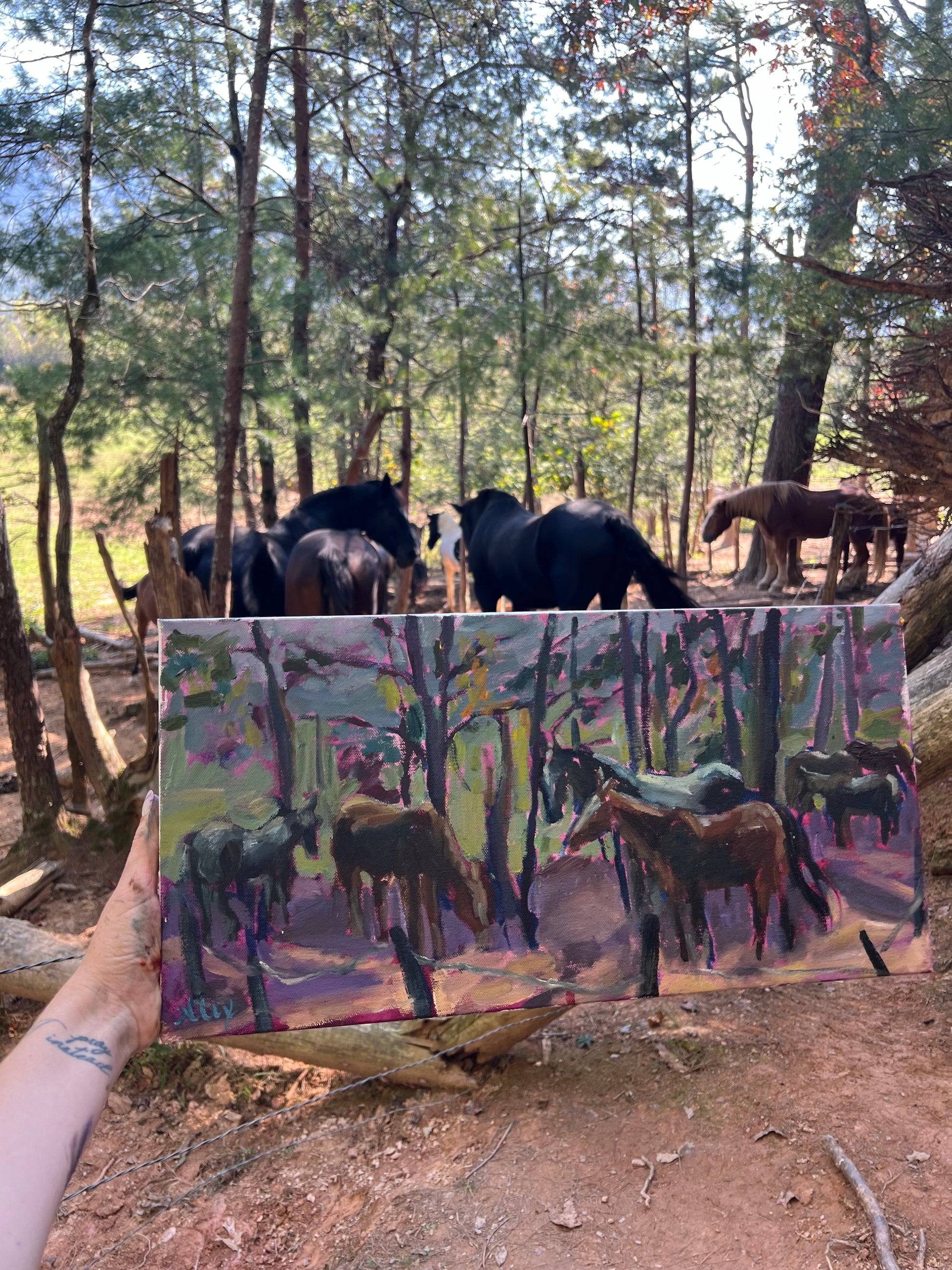 This 10x20 oil on canvas painting was created en plein air at Cades Cove in the Smoky Mountain National Park.