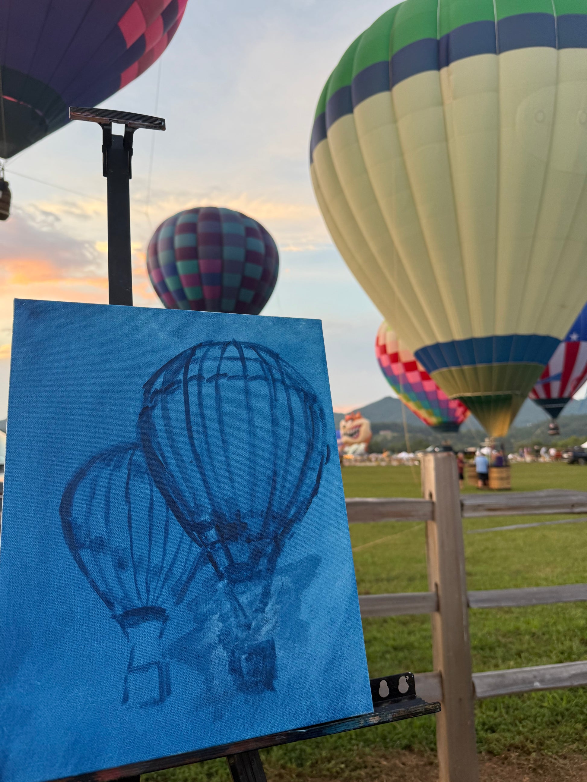 This 11x14 oil on canvas was created en plein air at the 2025 Smoky Mountain Hot Air Balloon Festival in Townsend, TN.